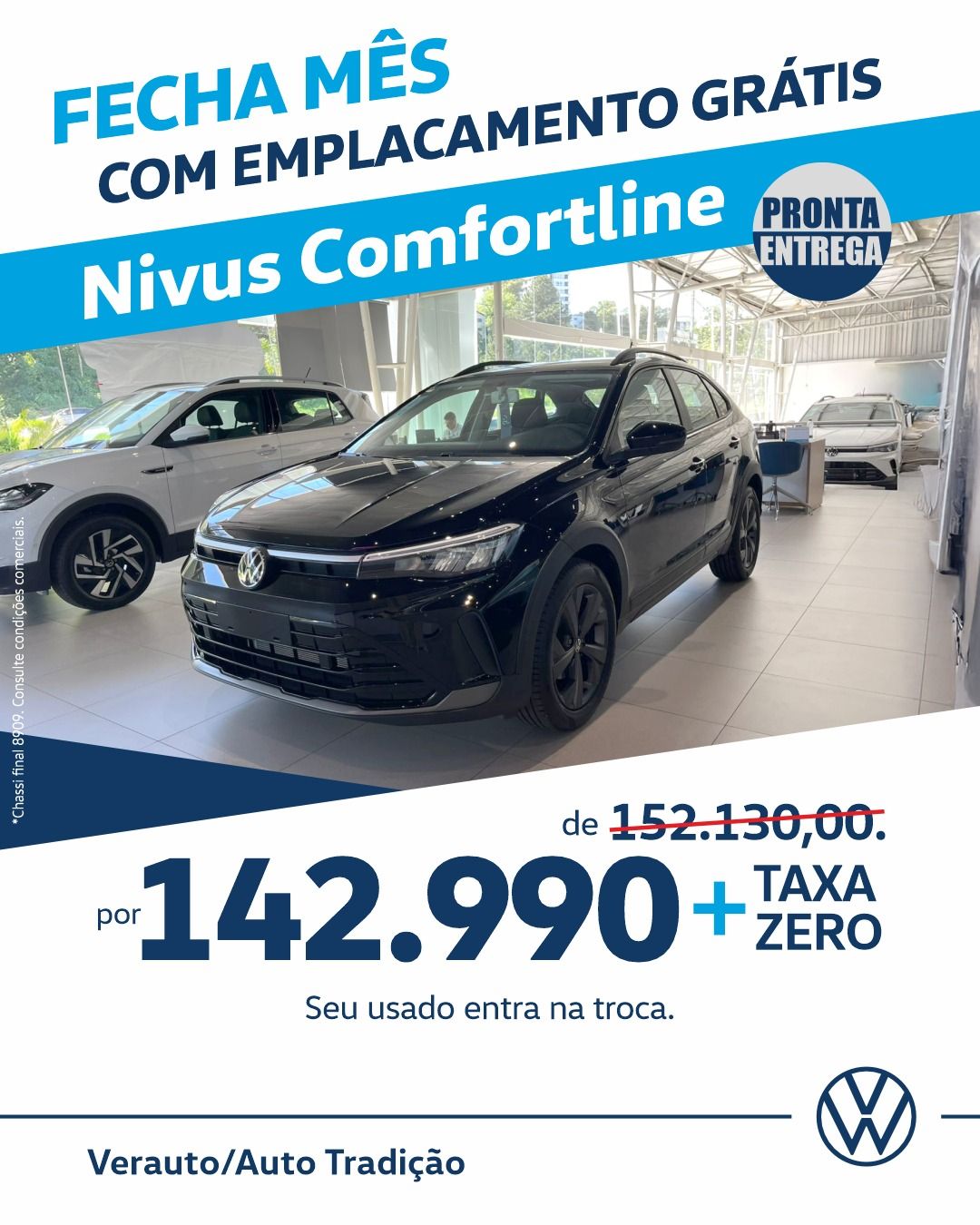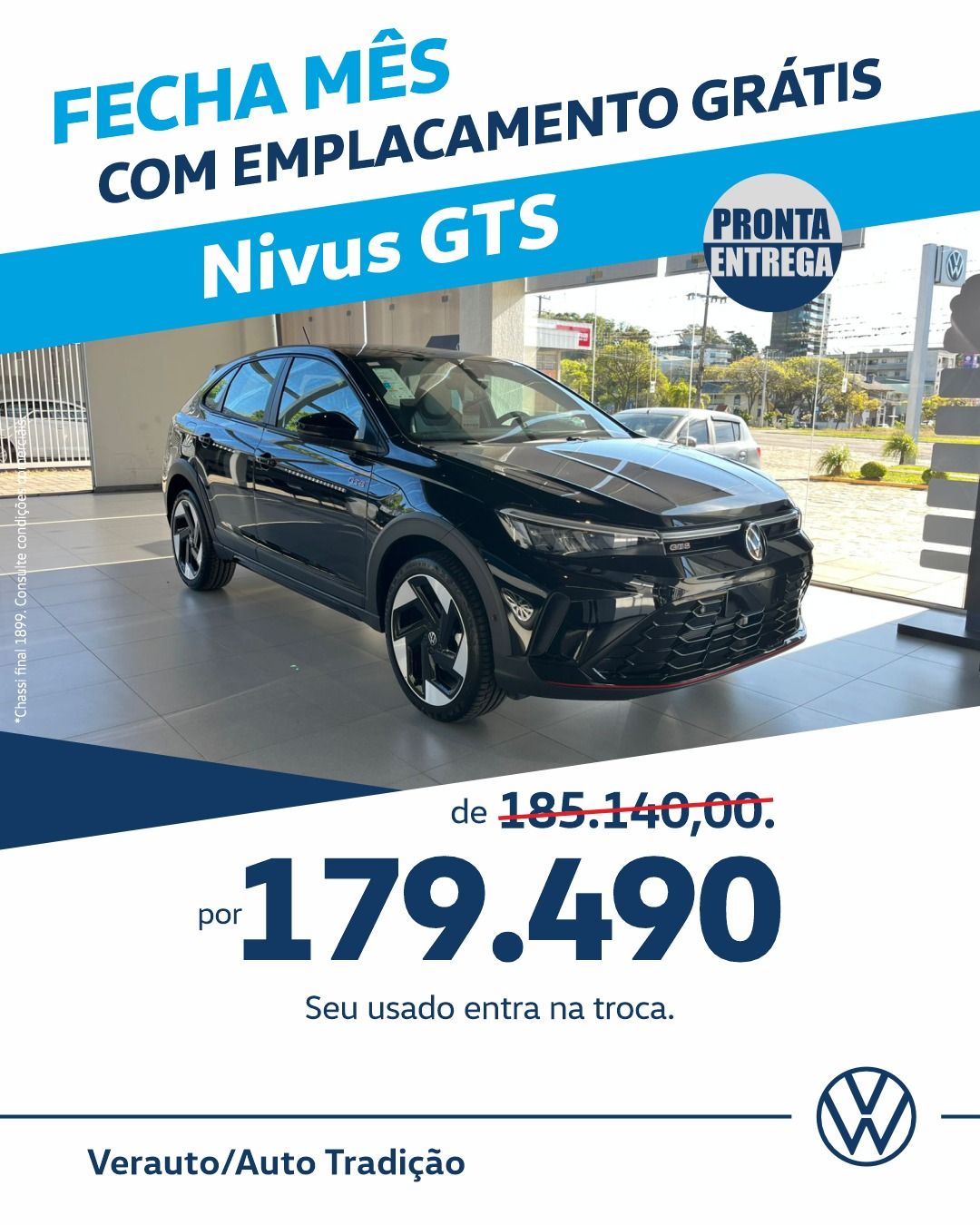 Com novas tecnologias e mais conectado, o novo Volkswagen Nivus ficou ainda melhor. Um dos modelos mais seguros da marca, o SUV ganha agora, além das tradicionais Highline e Comfortline, uma versão GTS que promete ser uma das preferidas na escolha de quem quer começar o ano de carro zero. Confira todas as novidades no post de hoje! Nova versão GTS Equipada com motor 1.4 TSI de 150 cv, a nova versão GTS só poderá ser conferida nas concessionárias no início do ano que vem, mas já faz parte de um plano maior da Volkswagen de lançar 18 novos modelos em terras tupiniquins até 2028. No total, neste novo ciclo de investimentos, serão investidos R$ 16 bilhões em nosso mercado. Além do logotipo GTS abaixo dos retrovisores laterais, na dianteira e na traseira do veículo, típico destas versões, o Nivus GTS conta com design ousado, rodas de 18’’, faróis e lanternas de LED interligadas, e aerofólio no porta-malas. O motor da nova versão Até então, dentro do que já foi divulgado pela montadora, o novo Nivus GTS terá um motor 1.4 turbo de 150 cv e 250 Nm e transmissão automática de seis velocidades. Seus preços partirão de R$ 170 mil, mas novidades devem ser liberadas a qualquer momento. Comfortline 200 TSI e Highline 200 TSI Mas não é somente a nova versão GTS que irá compor o quadro de lançamentos do Nivusem 2025, não. A Volkswagen também pretende lançar as versões Comfortline 200 TSI e Highline 200 TSI no ano que nasce. Com motor 200 TSI e potência de 128 cv, será possível chegar a 100 km/h em apenas 9,9 segundos no etanol e 10,5 segundos na gasolina. Diferente da versão GTS, as rodas, nos dois casos, serão de aro 17’’, mas os faróis e lanternas de LED permanecerão interligados. Fale com a nossa equipe para reservar o seu!
